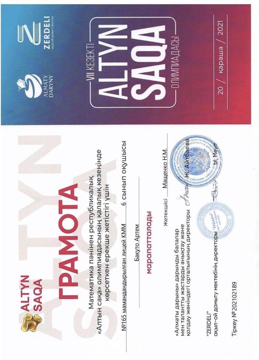 Бакуто Артем-Грамота IV место