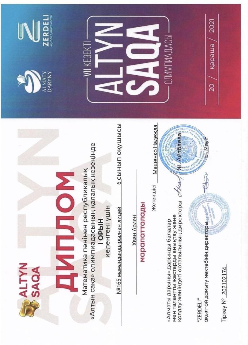 Хван Арлен-Диплом I степени