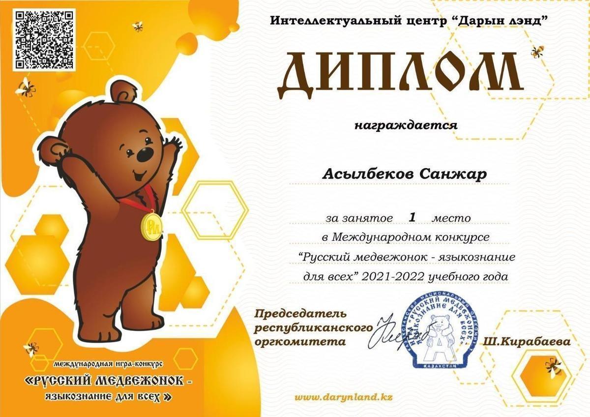 Международном конкурсе "Русский медвежонок-языкознание для всех"! А также