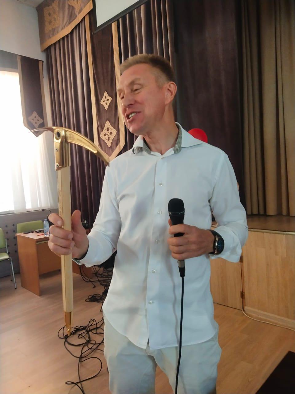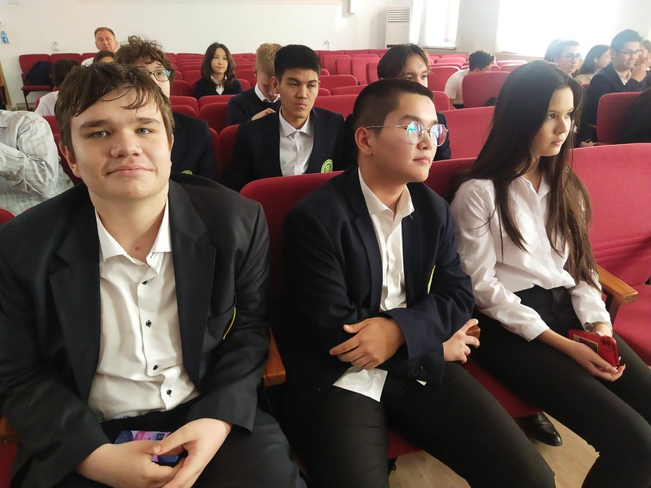 Учащиеся 11 классов приготовили литмонтаж и видеоматериал, посвященный Дню Республики. Также они подготовились к встрече с Дедешко Б. Е. Борис Евгеньевич пришел на встречу не с пустыми руками, он показал видеоматериал о своих восхождениях и принес «Золотого ледоруба Азии» высшую награду альпинистов. Позитивный настрой от великого альпиниста передался детям.
