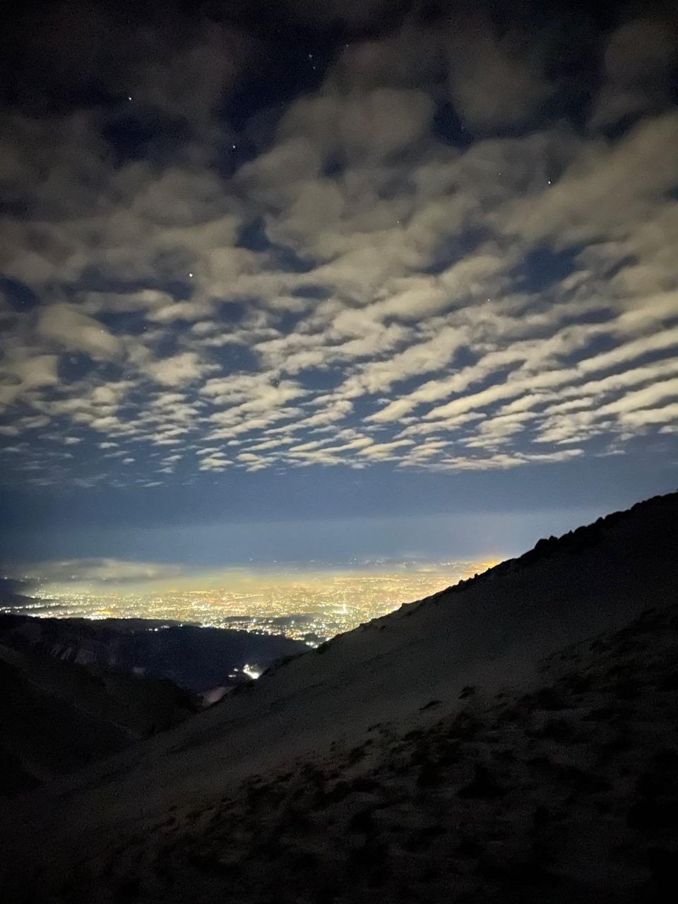 "Оказалось, что ночью горы стоят на месте, в том же снежном одеянии, только хруст снега под ногами раздается более резче и громче в морозной темноте. И вид другой на наш город, который почти не спит... прекрасен," - рассказал Касым Кизатович.