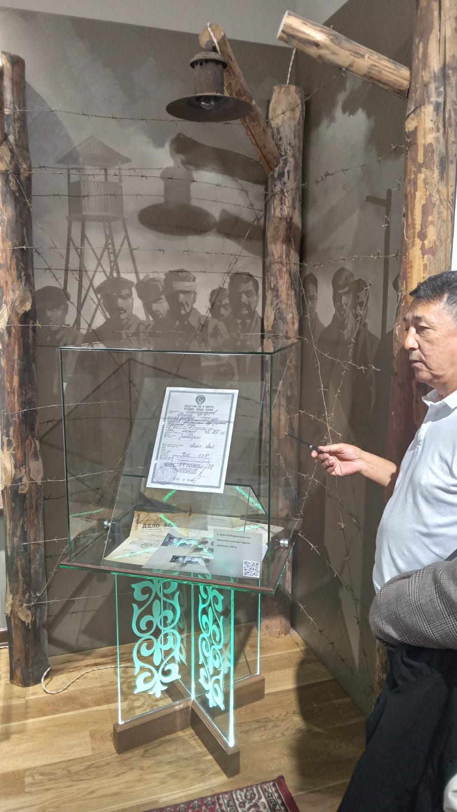Здесь, в доме на углу улиц Байтурсынова и Жамбыла, в 1934-1937 гг. Ахмет Байтурсынов жил с семьей. Ребята с большим интересом рассматривали архивные документы, отражающие путь ученого, его личные вещи – сундук, чемодан, саквояж, самовар, домбру, пишущую машинку.